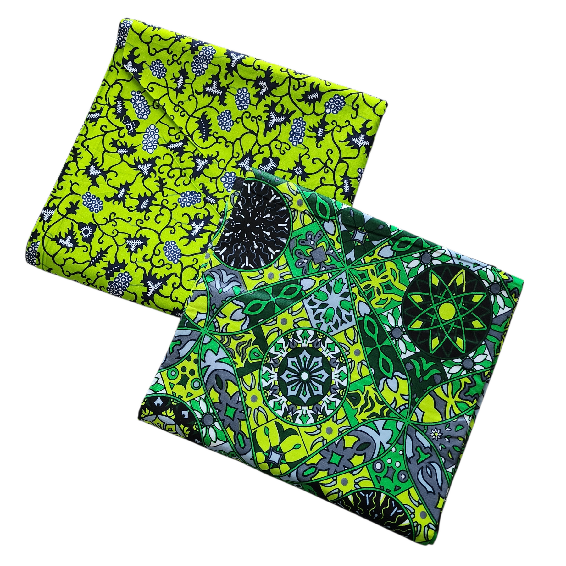 Mix and Match African Print Fabric, Ankara Fabric, 100% Cotton Fabric, Wax Print Fabric, Green and White Ankara Fabric