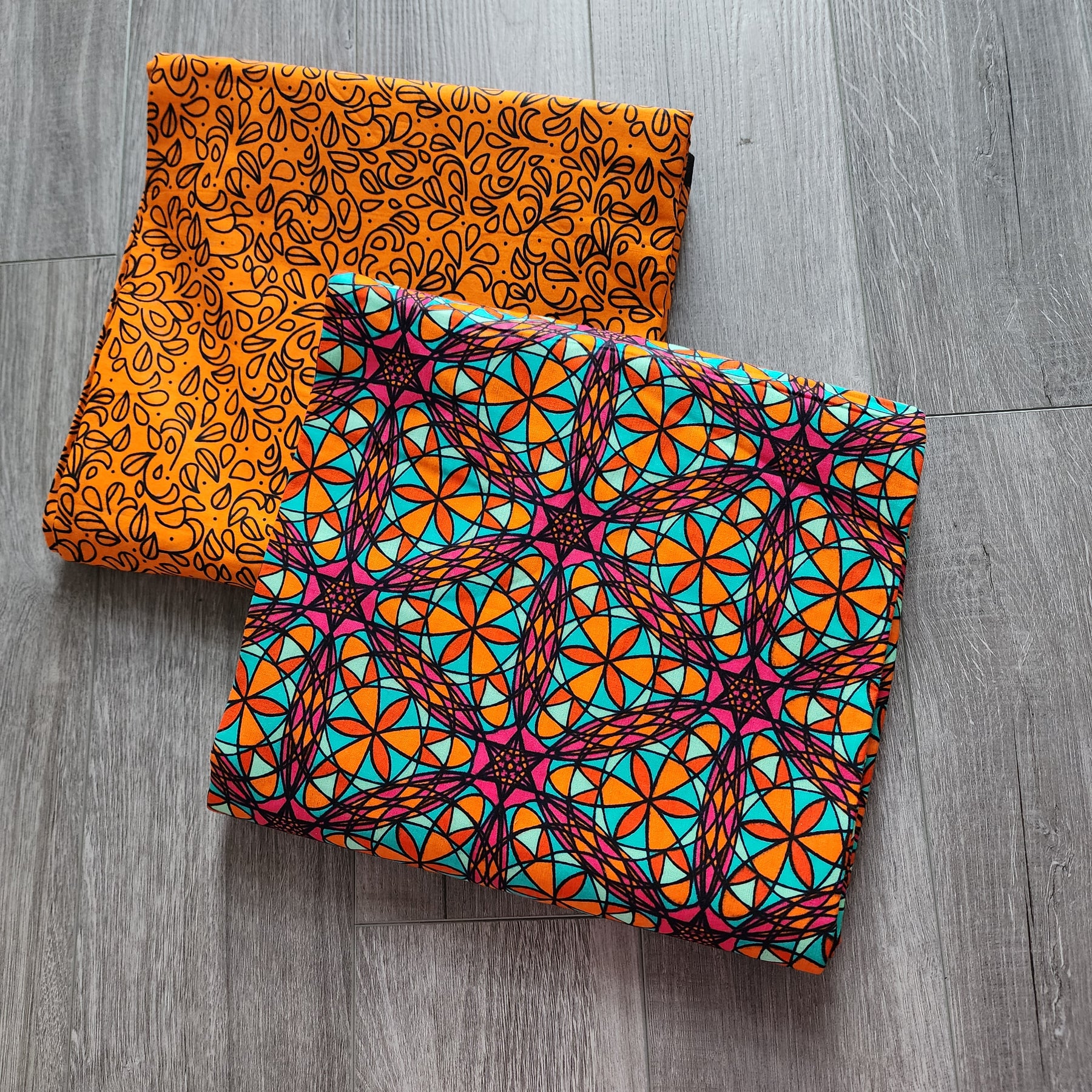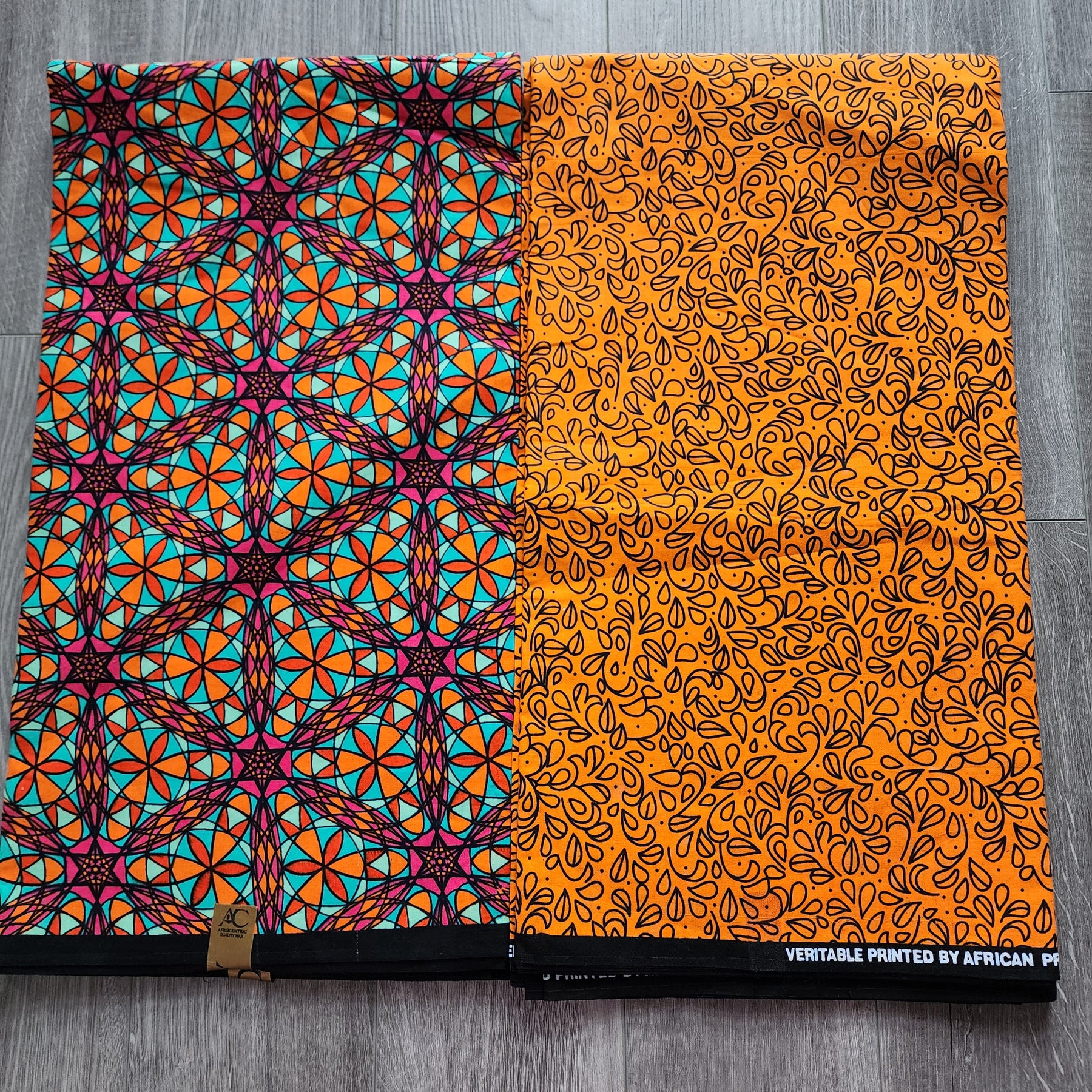 Mix and Match African Print Fabric, Ankara Fabric, 100% Cotton Fabric, Wax Print Fabric, Orange and Teal Ankara Fabric